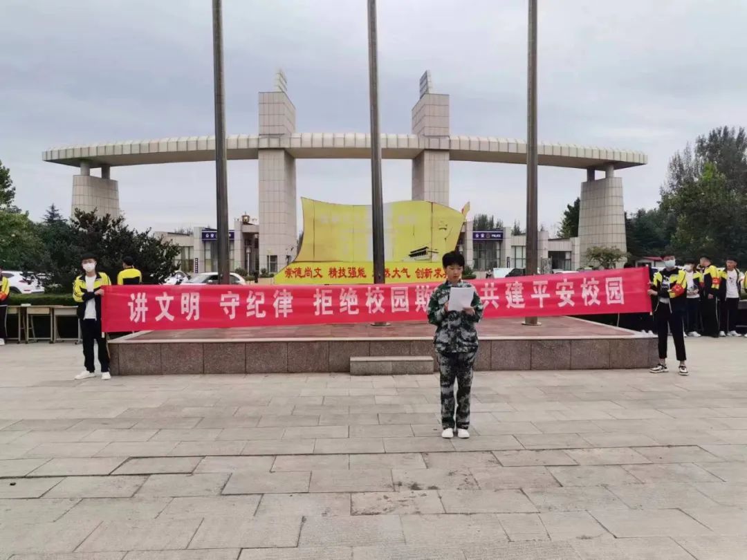 为进一步树立学生安全意识,净化校园环境,促进学生身心健康发展,营造整洁、有序、和谐的文明校园氛围,9月19日上午,潍坊市经济学校组织全体师生开展“讲文明 守纪律 拒绝校园欺凌 共建平安校园”为主题的国旗下讲话活动。