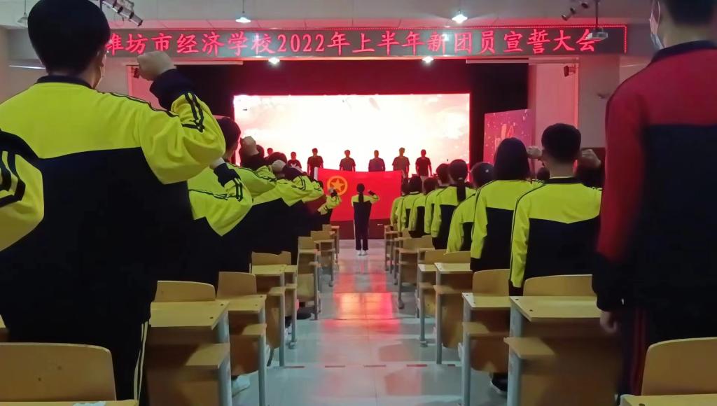 月8日,潍坊市经济学校在第一报告厅隆重举行2022年新团员入团宣誓大会。学校、团委、学生处领导以及各系团总支书记、全体团员和学生代表参加了本次大会。团委李仁山书记主持大会。