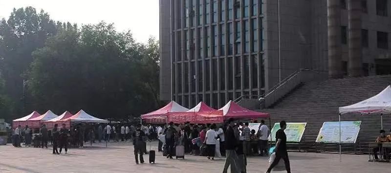 校园里迎新横幅高悬、彩旗飘飘,各类迎新标语鲜亮醒目,温馨热闹;工作人员和志愿者在校园各入口、志愿者服务点、各系新生报到处等服务站点为新生及家长耐心细致进行入学报到流程讲解、悉心引导。