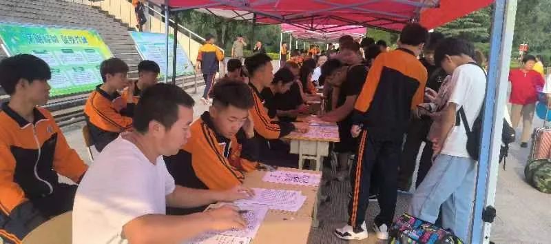 伴着晨曦轻闻花香,青春校园洒满阳光,老师们用温暖亲切的微笑,迎接每一位在光影中走进校门的翩翩少年。信息登记、扫码入群,现场接待的老师分工明确,各项工作有条不紊地进行着。
