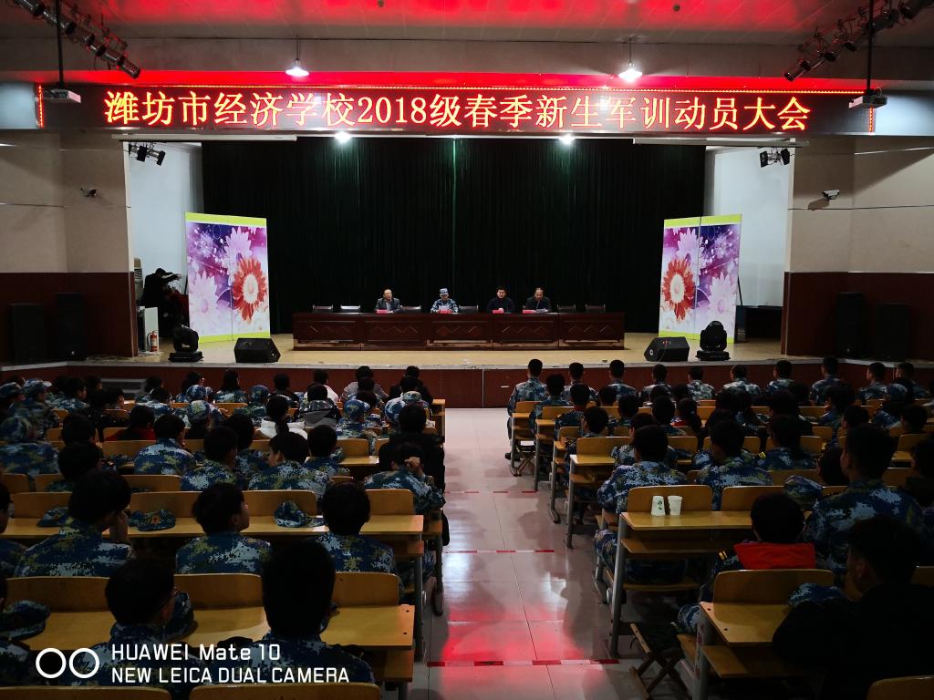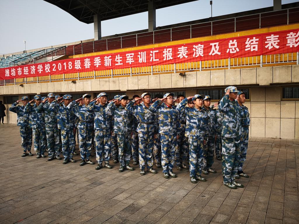 3月24日,潍坊市经济学校2018级新生军训汇报表演暨总结表彰大会在田径运动场隆重举行。学校常务副校长唐德良同志、军训教官及全体新生参加了军训汇报总结表彰大会。大会由郑立峰副校长主持。