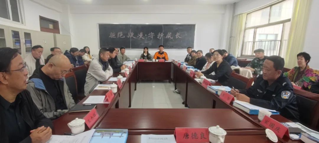 唐德良校长从学生管理、教育教学、学生成长等几个方面对学校的总体情况跟与会人员做了介绍。他强调,学校、家庭、社会联手,培养“手中有艺、腹中有墨、肩上有担、心中有爱、脸上有笑、目中有人”的“六有”好学生。