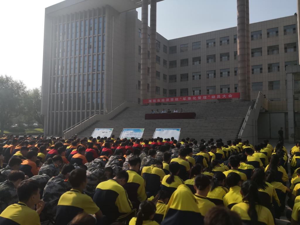9月6日,学校在教学楼北广场召开军事化管理动员暨誓师大会。学校分管领导及近3000名师生参加了大会。