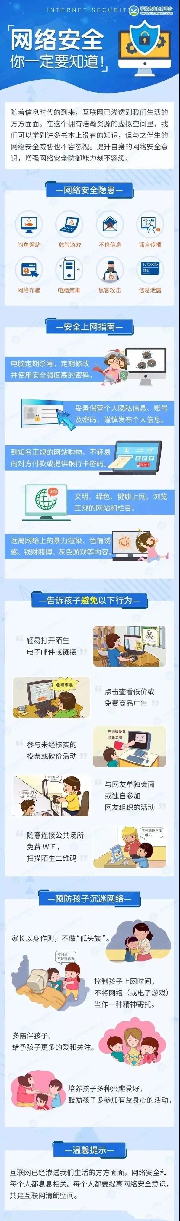 当下我们正处于高速发展的网络时代,网络新科技给我们带来了很多良好的体验和便利,同时也带来了各种风险和隐患,网络安全,是指通过采取必要措施,防范对网络的攻击、侵入、干扰、破坏和非法使用以及意外事故,使网络处于稳定可靠运行的状态,以及保障网络数据的完整性、保密性、可用性的能力。我们一定要养成良好的网络安全习惯,加强师生网络安全和防范计算机病毒的意识,共同营造健康安全的网络环境。