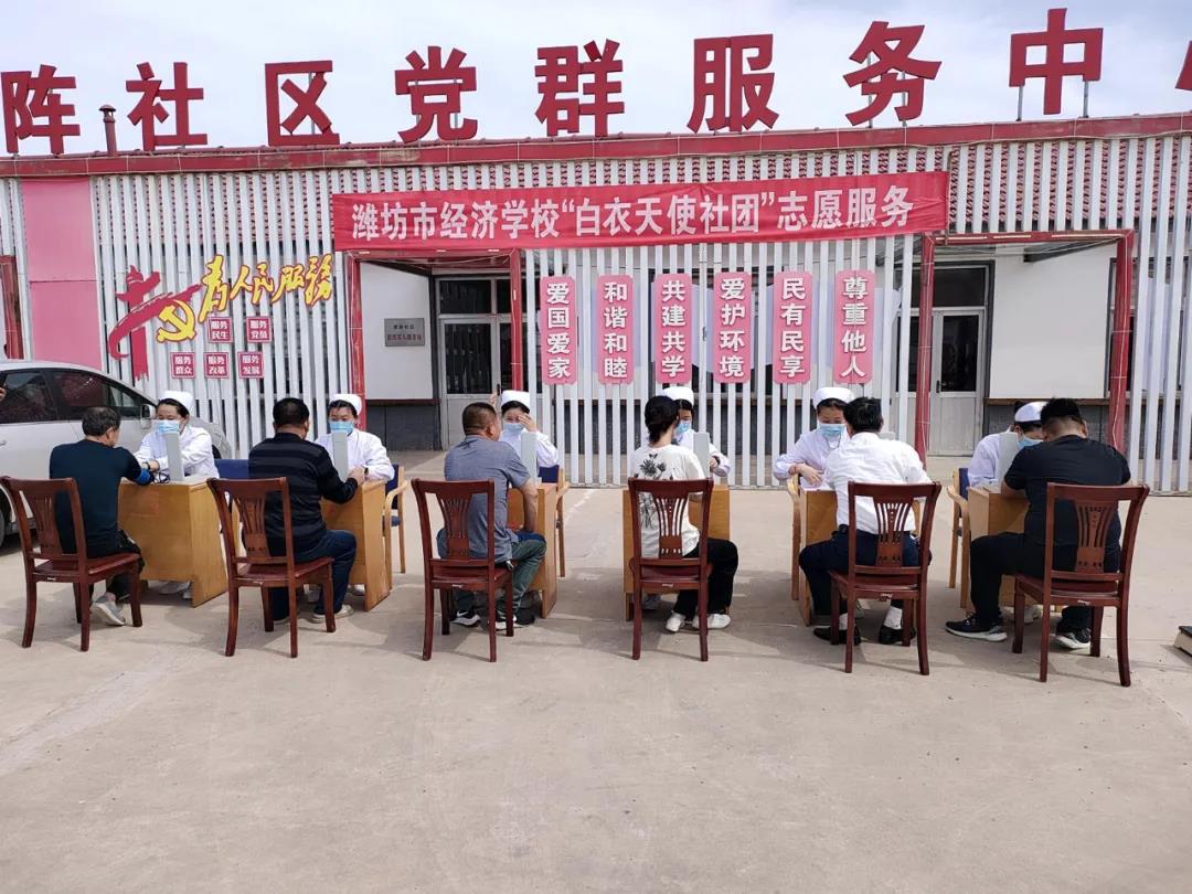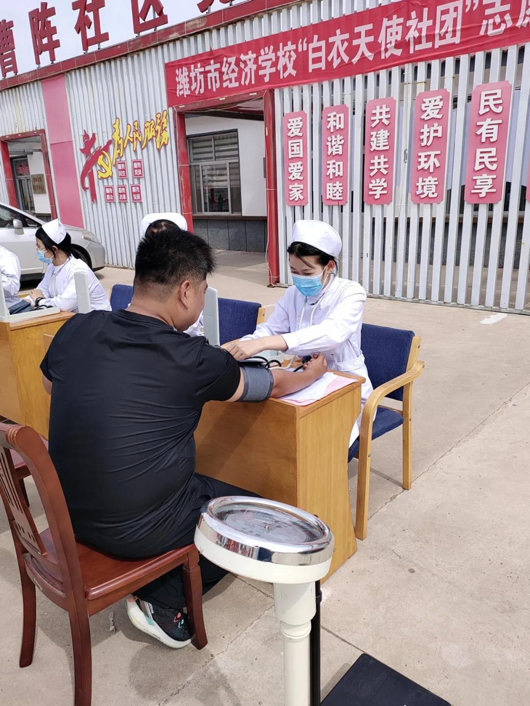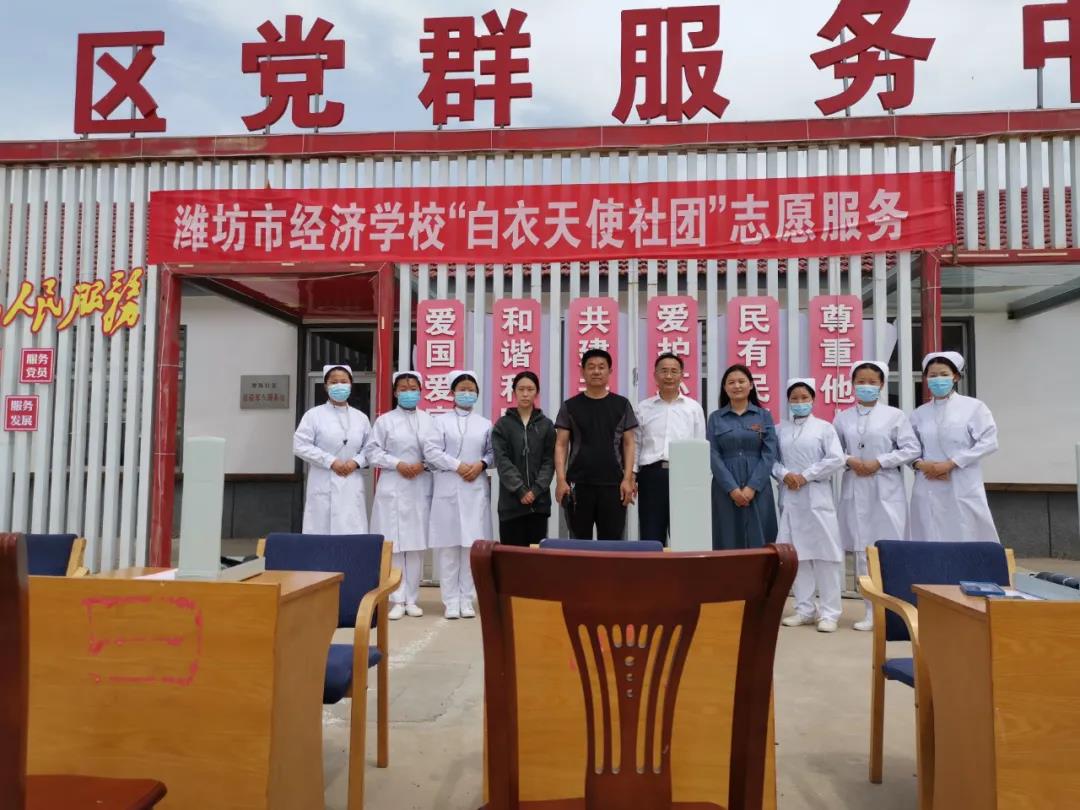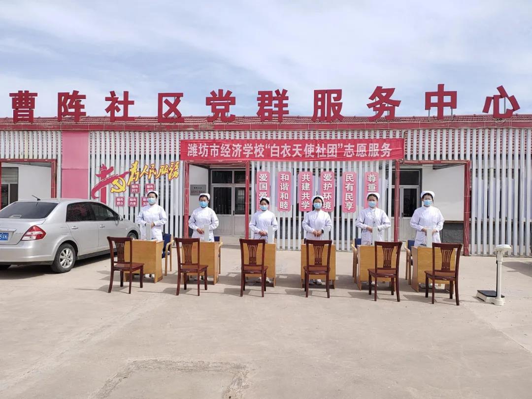 为大力弘扬劳动光荣、技能宝贵、创造伟大的时代风尚,践行技能:让生活更美好。紧密结合职业学校特色,充分发挥专业优势,找准与群众生活的结合点,引导学生在志愿服务中践行社会主义核心价值观,增强责任感、使命感,树立成长成才自信,同时面向社会展示职业教育成果和学生的职业素养。5月26日,我校护理专业的“白衣天使”社团在系主任陈祥忠和指导教师李术宝、刘林林、王寅老师的带领下走进密州街道曹阵社区开展为社区居民义务教授护理知识和免费查体活动。