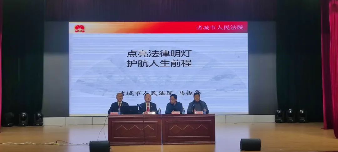 诸城市人民法院党组成员、副院长、学校法治副校长宋国庆同志及诸城市人民法院法官马振华同志到校开展法治宣讲进校园活动,为全体同学做精彩报告。