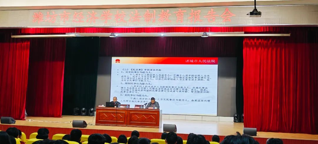 为了进一步加强校园法治教育,营造一个安全、文明、有序的校园氛围。近日,潍坊市经济学校开展了青少年法治教育讲座活动。
