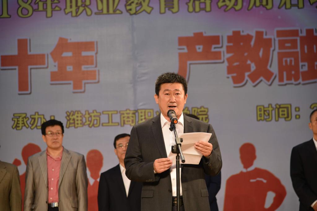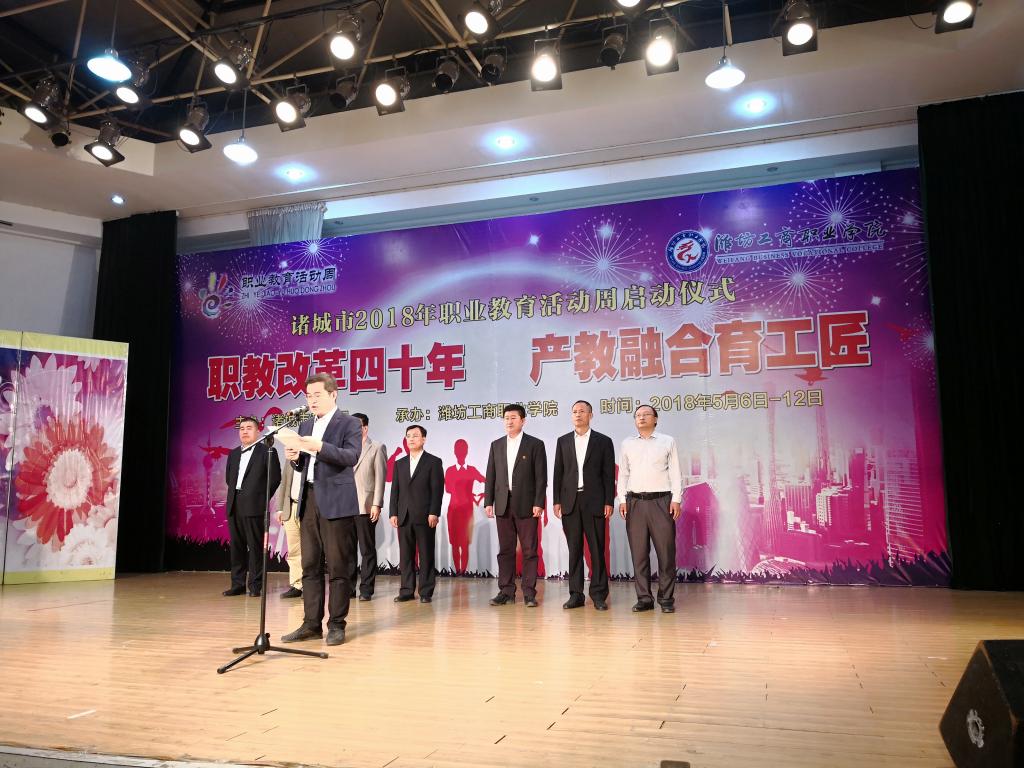为全面贯彻党的十九大精神,宣传改革开放以来诸城市职业教育取得的丰硕成果,进一步营造全社会关心支持职业教育的良好氛围,按照教育部、山东省教育厅及潍坊市教育局的统一部署,2018年5月7日,诸城市2018年职业教育活动周启动仪式在学校图书信息楼隆重举行。今年职业教育活动周的主题是“职教改革四十年,产教融合育工匠”。