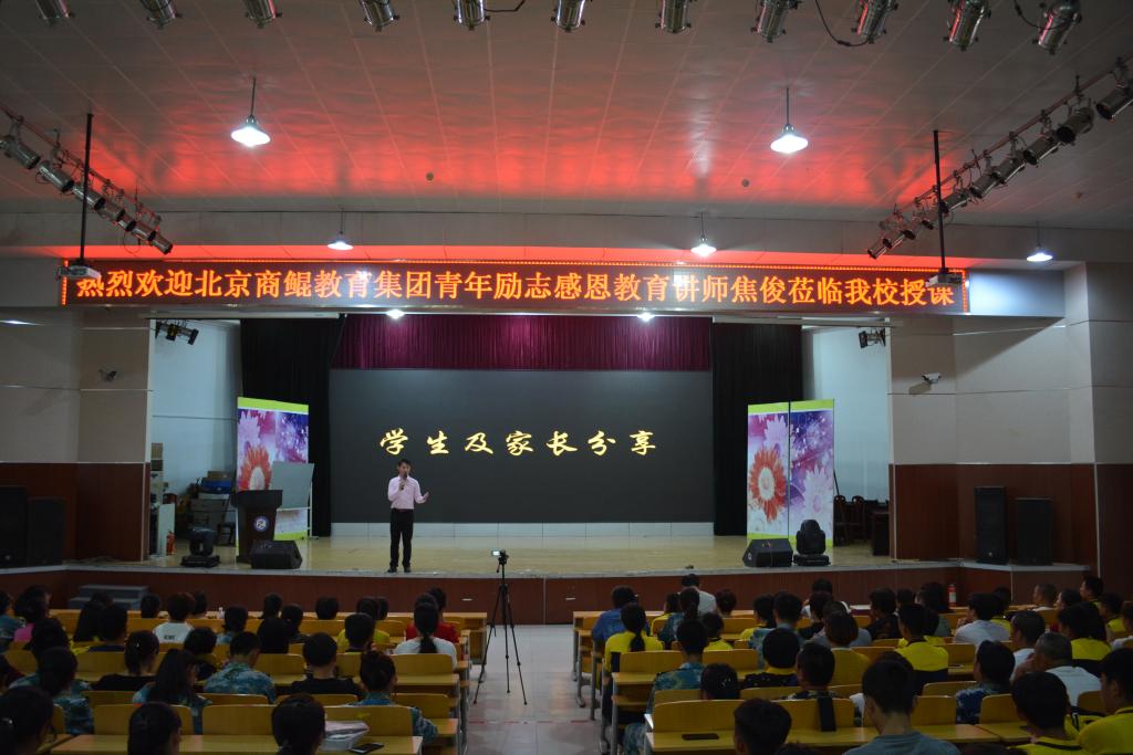 2018年9月20日至21日,北京商鲲教育集团感恩教育专家焦俊一行,受邀来潍坊市经济学校为学生讲授感恩教育课。我校交通管理系(高铁专业、无人机专业)师生及学生家长参加了此次活动。