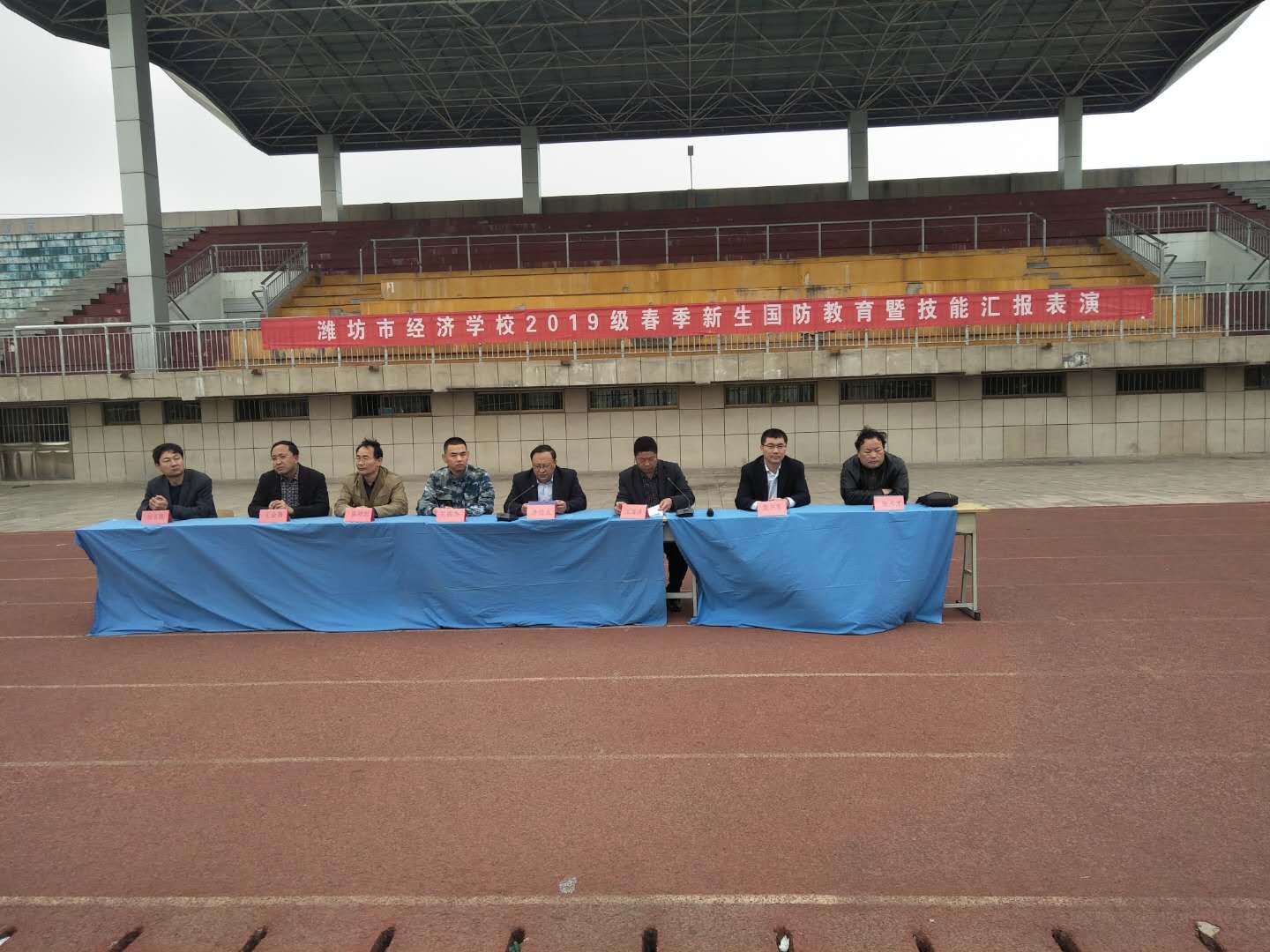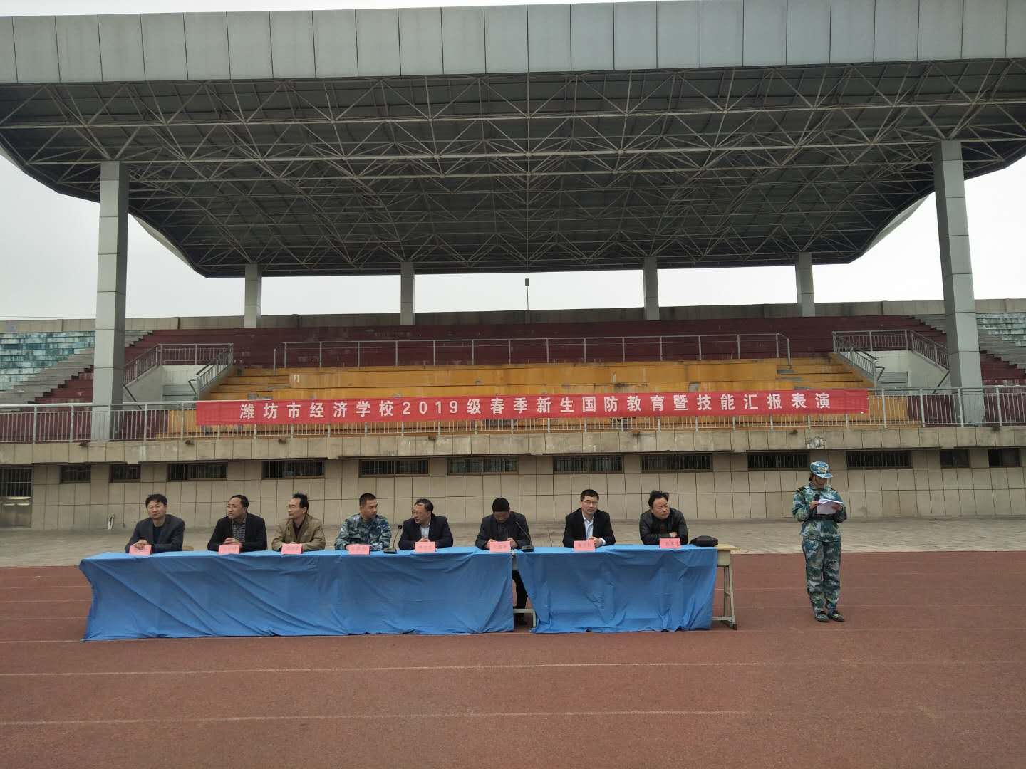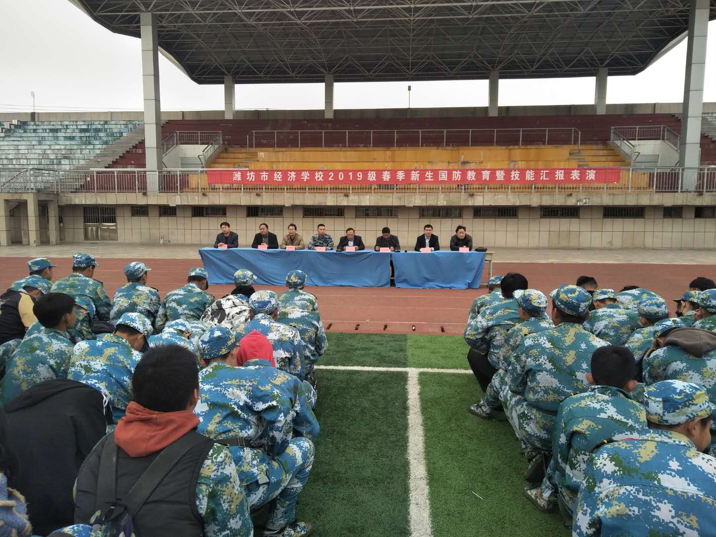 3月29日,潍坊市经济学校2019级新生国防教育暨技能汇报表演在田径运动场隆重举行。学校领导唐德良同志、军训教官及全体新生、部分家长参加了本次大会。大会由王海涛处长主持。