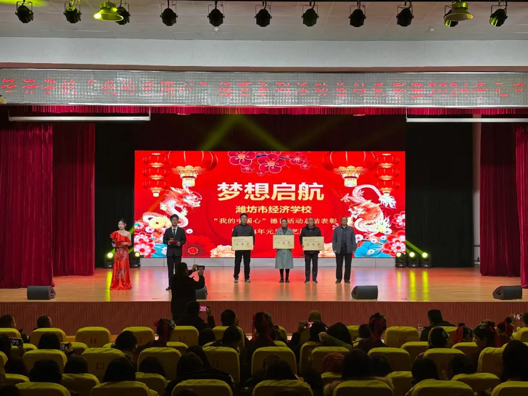 为进一步丰富校园文化,激发广大学生爱党、爱国、爱校、爱班的热情与动力,潍坊市经济学校于12月29日开展“梦想启航·潍坊市经济学校我的中国心德育系列活动总结表彰暨2024年元旦文艺展演”活动,此次活动形式多样,异彩纷呈。一个个精彩的节目展现了经校学子阳光进取、昂扬向上的精神风貌。
