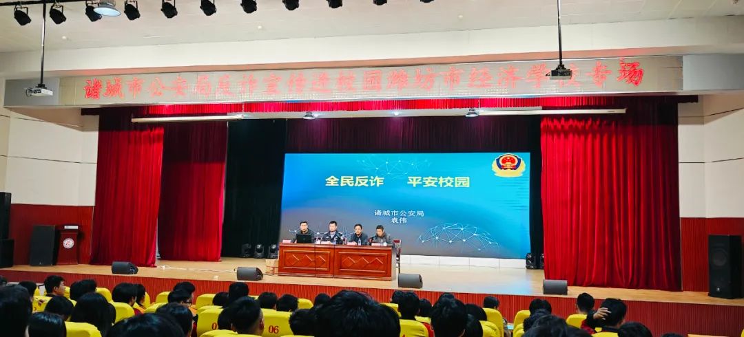 为增强我校师生反诈防骗意识,提高对电信网络诈骗的识别和应对能力,有效预防和减少被诈骗案件的发生,10月31日,潍坊市经济学校开展“反诈宣传进校园 守护平安不止步”主题宣讲活动。诸城市公安局反诈大队副队长袁伟应邀到校,对全体师生进行了反电信网络诈骗专题报告。