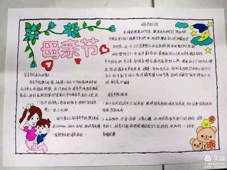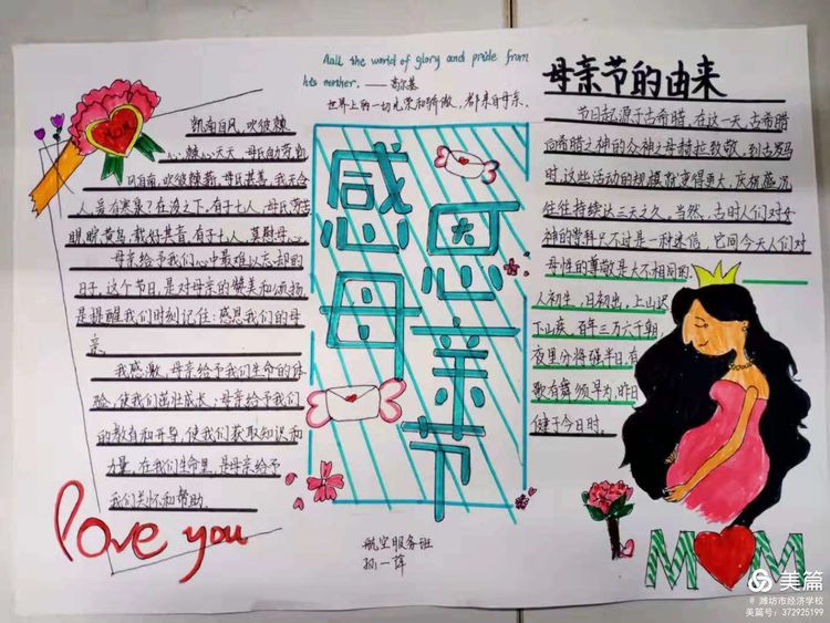 既然母爱不可思议,拥有这个是一个幸运儿了,像那个儿子一样,因为有了母爱而幸福,不管在贫寒,我们也总是一个幸福的人 ,母亲节的来临 ,同学们为母亲画了许多优美的手抄报 。
