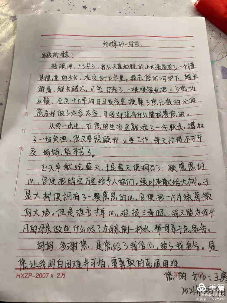 母亲,像一堵墙,遮住了风雨,遮住了烈日。每天都用充满爱的手抚摸着我们这些幼雏的羽毛,鼓励我们去搏击万里长空。“听妈妈的话,别让她受伤;想快快长大,才能保护她”正如歌词中写的,她们所要的只是我们能够健康快乐的长大,我们听话不犯错,少走弯路就是对她最好的回答。
