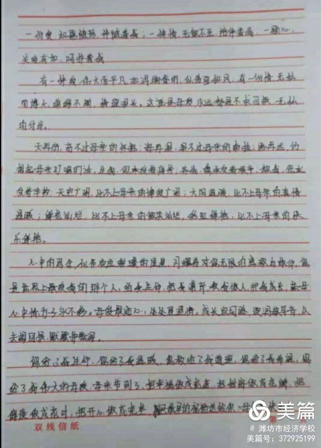 五月,阳光灿烂,暖风拂面,那是因为在这亲情融融的季节里,我们一次迎来了“母亲节”为进一步加深社会主义核心价值观教育,弘扬百善孝为先。潍坊市经济学校组织开展以“浓情五月,感恩母亲节”为主题的感恩活动。