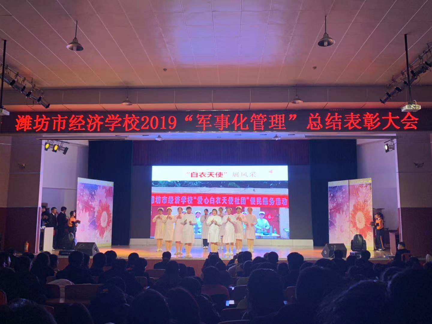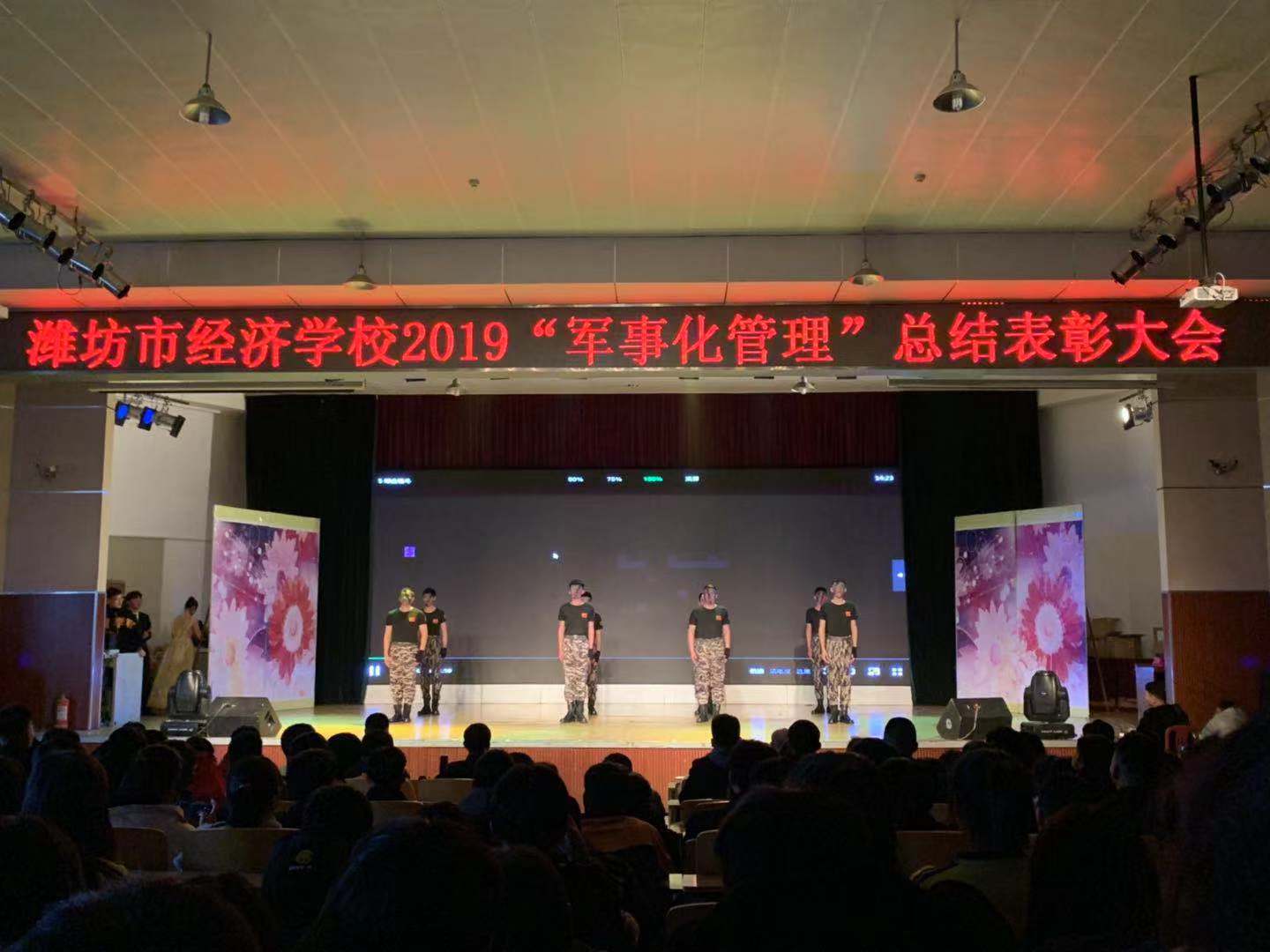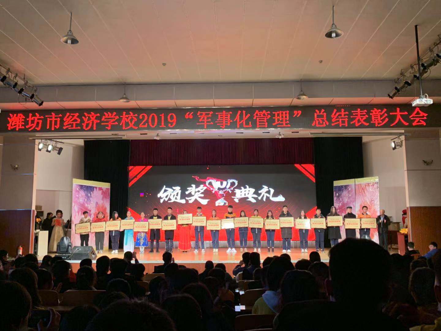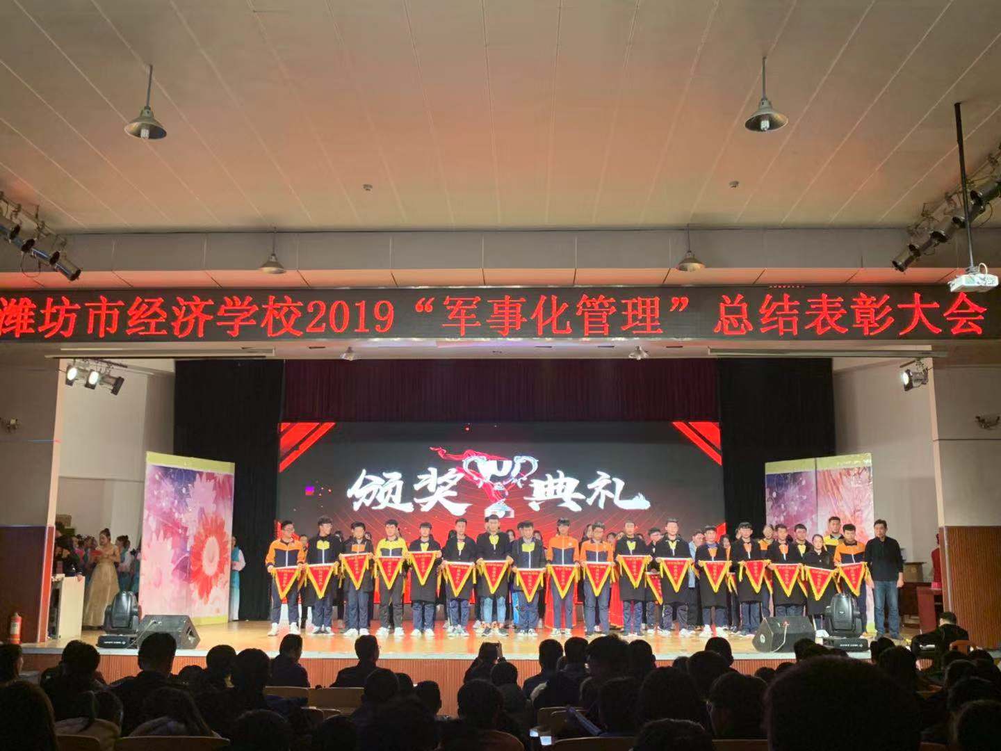12月25日,潍坊市经济学校2019年军事化管理总结表彰大会在学校第一报告厅隆重举行。学校领导、部门负责人及全体学生出席了本次盛典。