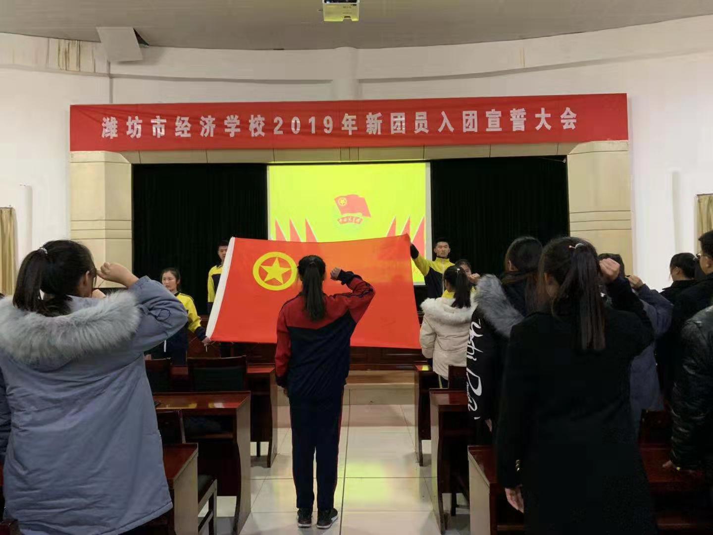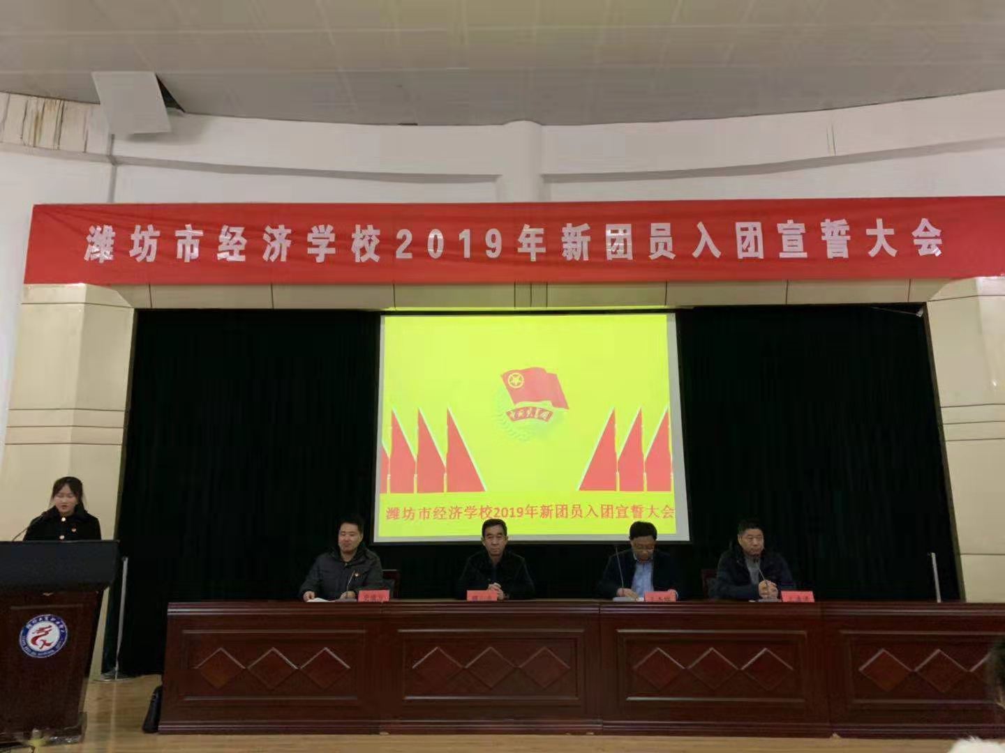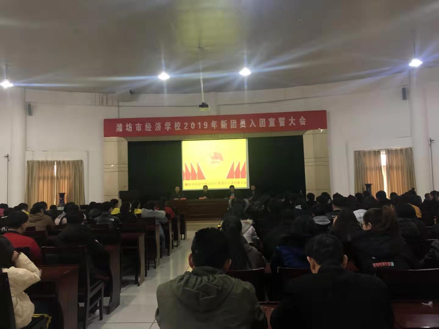 12月18日,潍坊市经济学校在第二报告厅隆重举行2019年新团员入团宣誓大会。学校、团委、学生处领导以及各系主任、系团总支书记、全体团员参加了本次大会。
