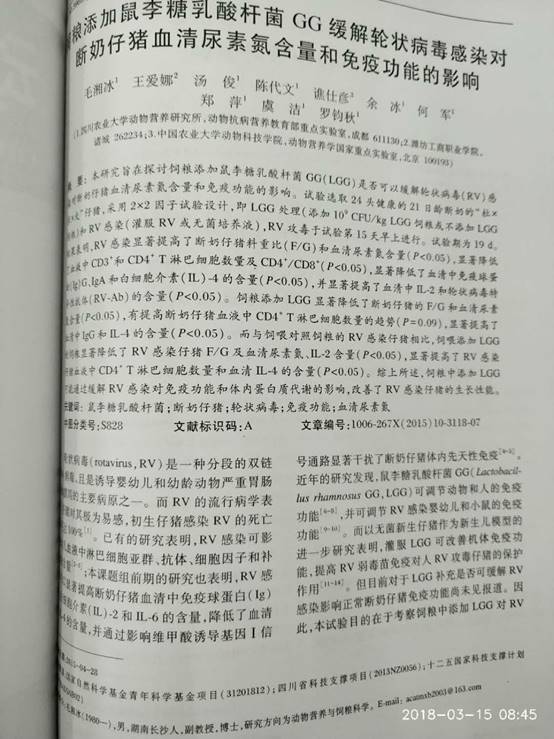 饲粮添加鼠李糖乳酸杆菌GG缓解轮状病毒感染对断奶仔猪血清尿素氮含量和免疫功能的影响 |