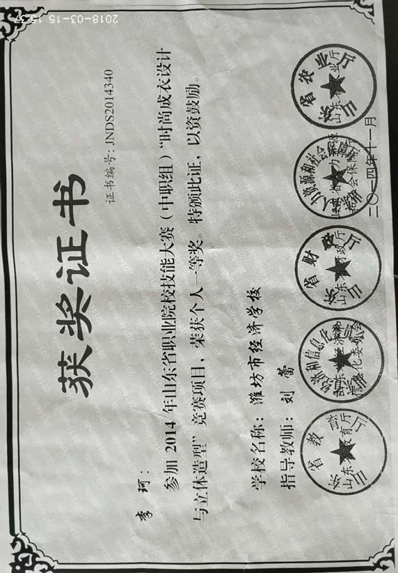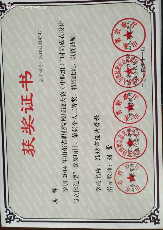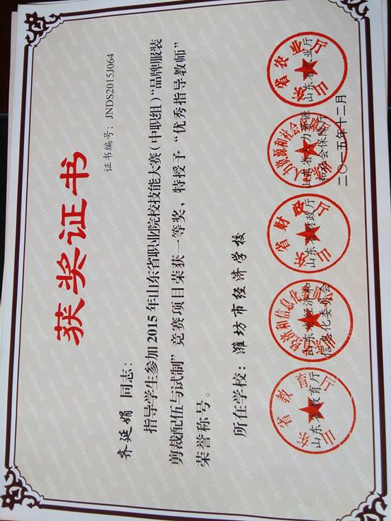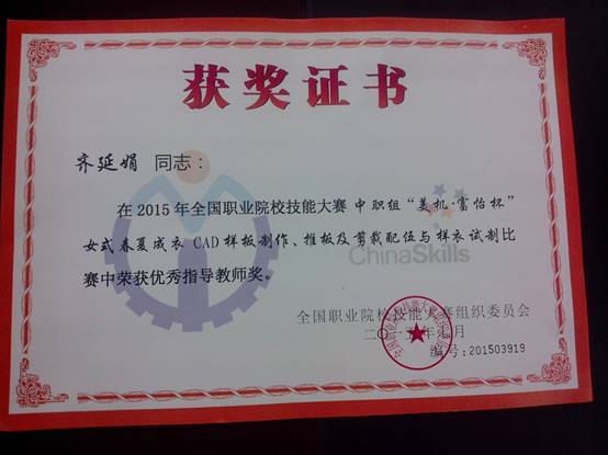 (3)服装等专业在全国及省市各级技能竞赛中多次获得金牌好成绩。学生在省以上的竞赛技赛中获奖10余项。