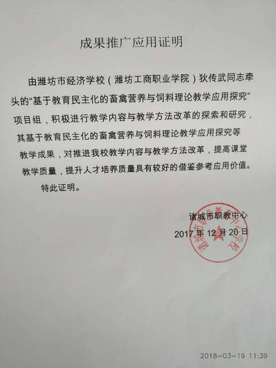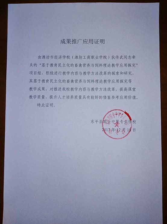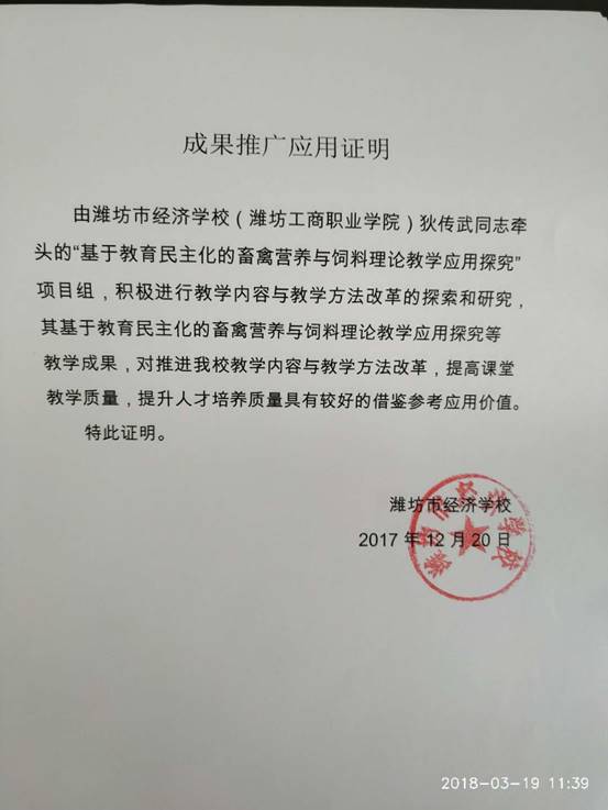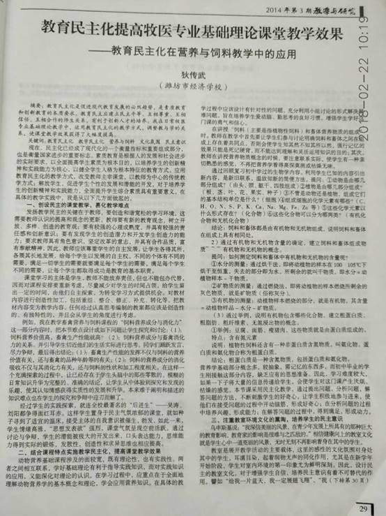 “基于教育民主化的畜禽饲料与营养理论教学应用探究”,是有别于传统教学方法关于畜牧养殖等专业基础理论教学方法的改革,是提倡改变单凭教师主宰课堂让学生参与,师生共同探究,充分发挥学生的主观能动性,教师做好引导和点评,使专业教学的难题顺利破解。