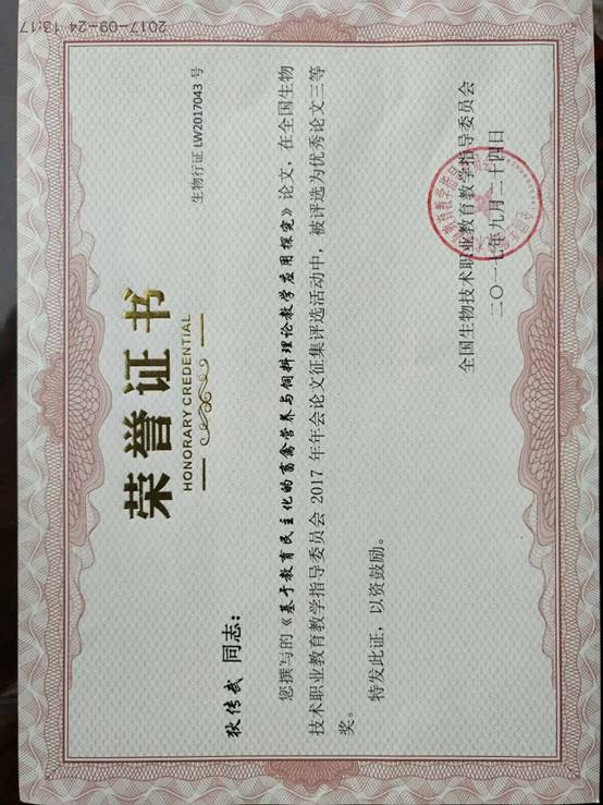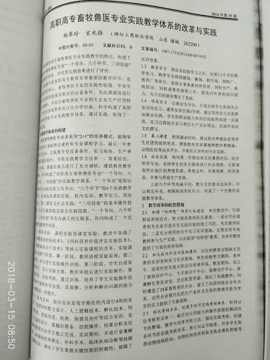 2、带动了专业建设。教学改革促进了专业教学水平整体提升的同时,带动了专业建设,我校服装生产与管理、畜牧养殖两专业先后被评为省市特色品牌专业。