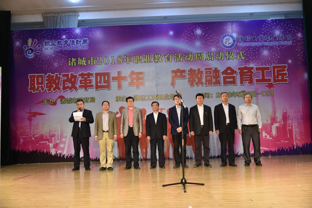 为全面贯彻党的十九大精神,宣传改革开放以来诸城市职业教育取得的丰硕成果,进一步营造全社会关心支持职业教育的良好氛围,按照教育部、山东省教育厅及潍坊市教育局的统一部署,2018年5月7日,诸城市2018年职业教育活动周启动仪式在学校图书信息楼隆重举行。今年职业教育活动周的主题是“职教改革四十年,产教融合育工匠”。